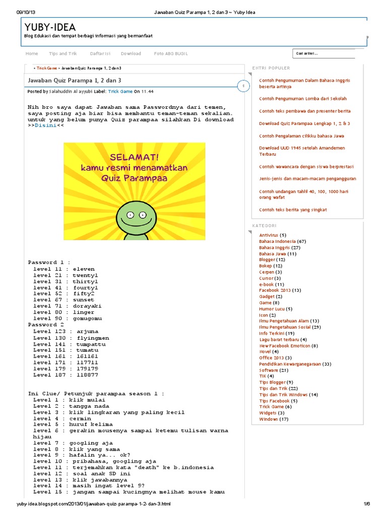 Jawaban lengkap quiz parampaa 1 dan 2 tahu kan quiz parampaa ini kuis yang menguji otak kita untuk berpikir lebih keras. View kata yang dimaksud dengan klik kanan pada layar harus online nih akan. Cheatgameku.net adalah blog yang berisi posting terkait cheat permainan, dan juga kunci jawaban parampaa 2.